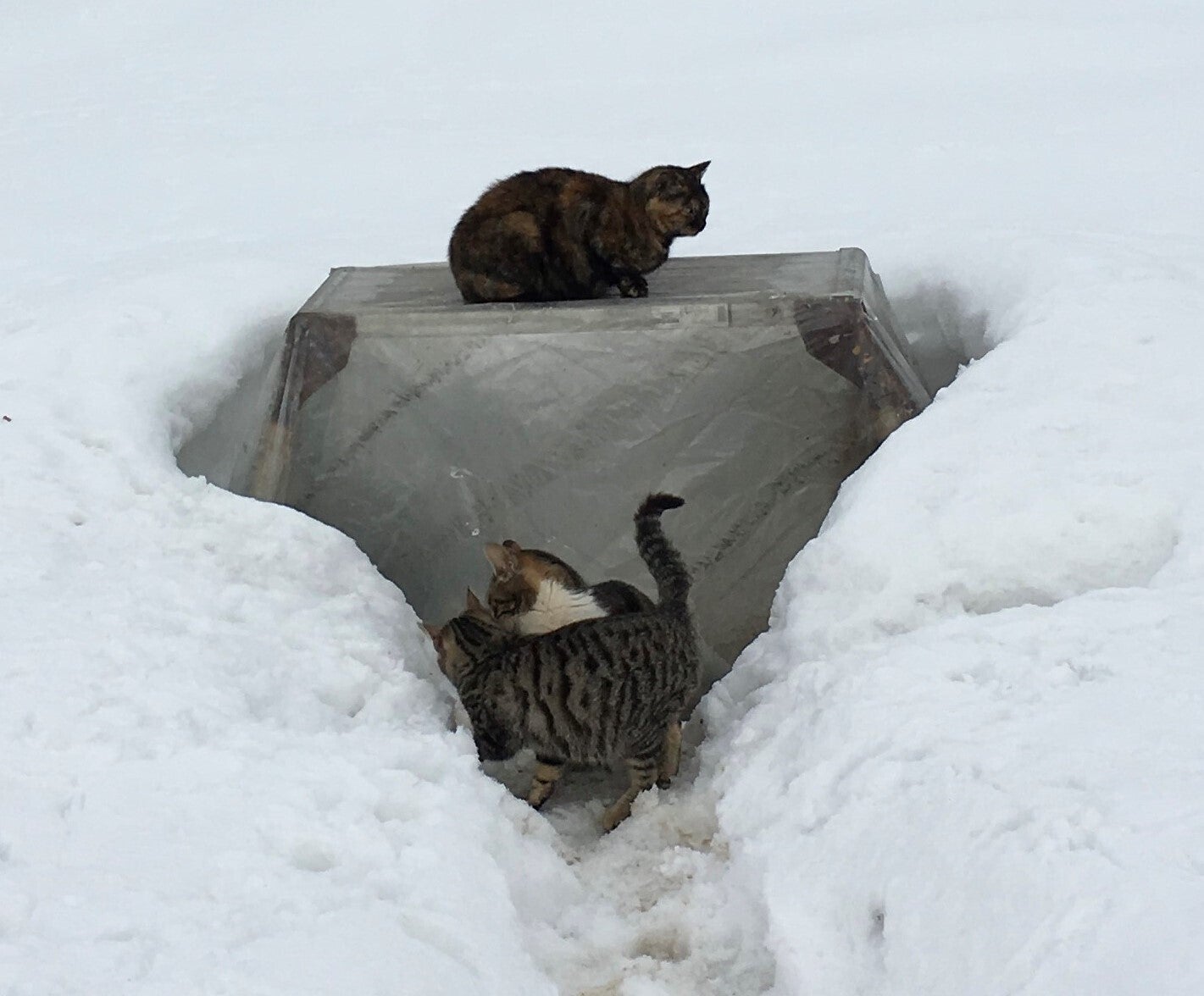 除雪した道を通って毎日いろんな野良猫さんが来店してくれます。