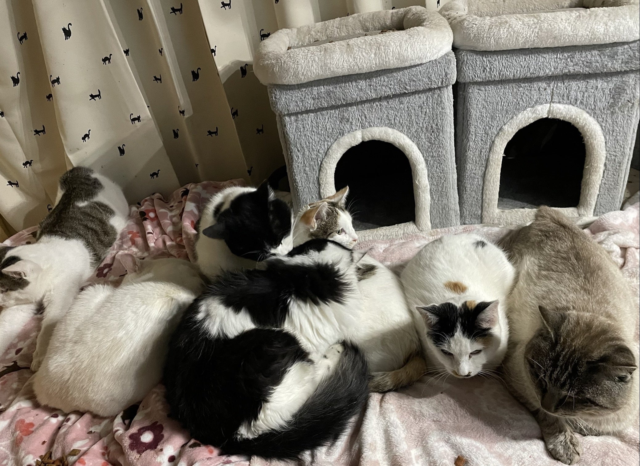 シェルターの猫達は皆様のおかげで仲良く楽しく暮らしています。