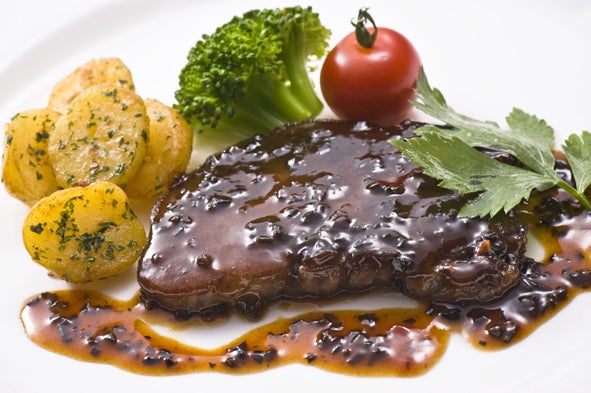 大好評の地元高級ビーフ愛鷹牛のポワレ トリュフ入りマデラワインソース