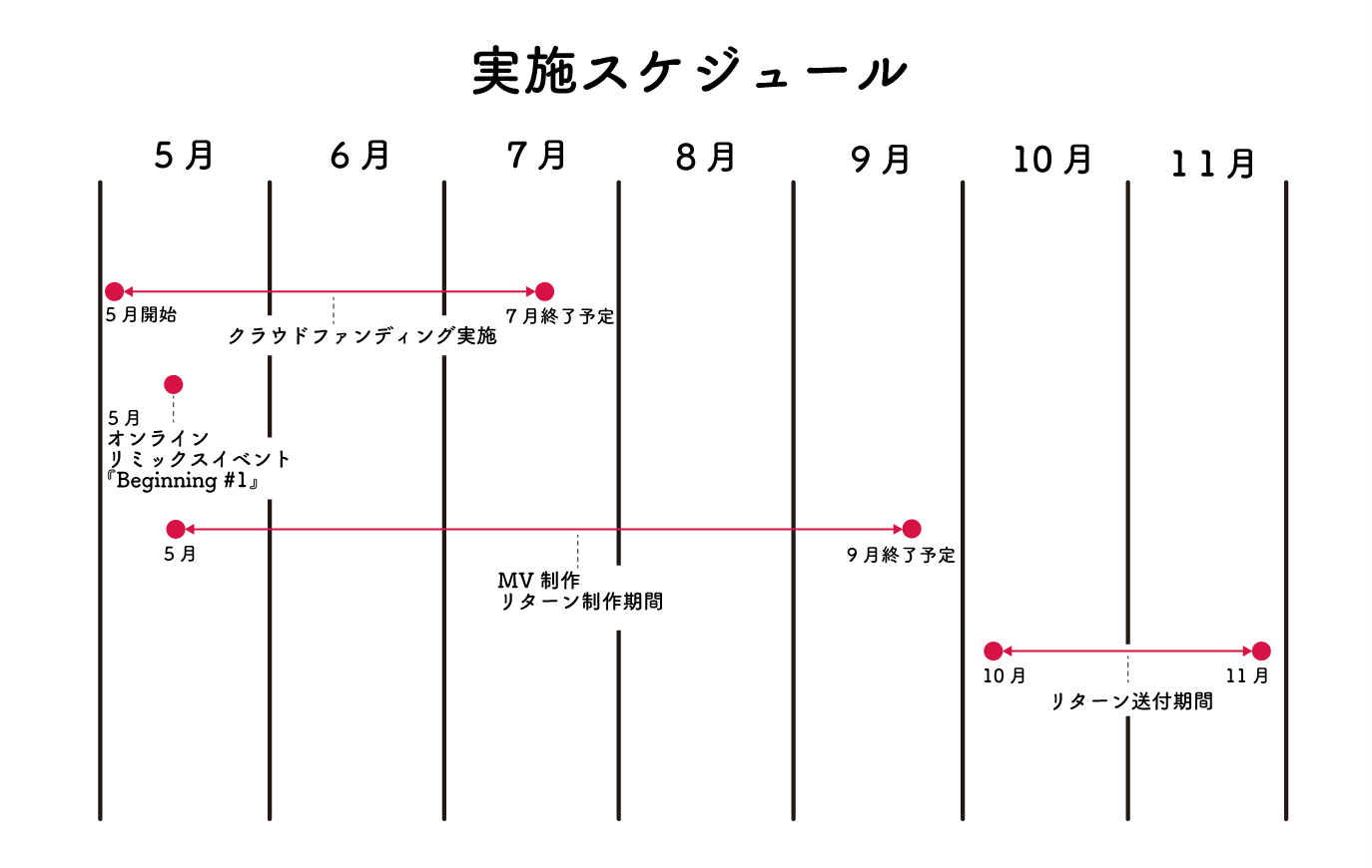 MVの制作とクラウドファンディングのリターンのスケジュールについては下記のとおりです。