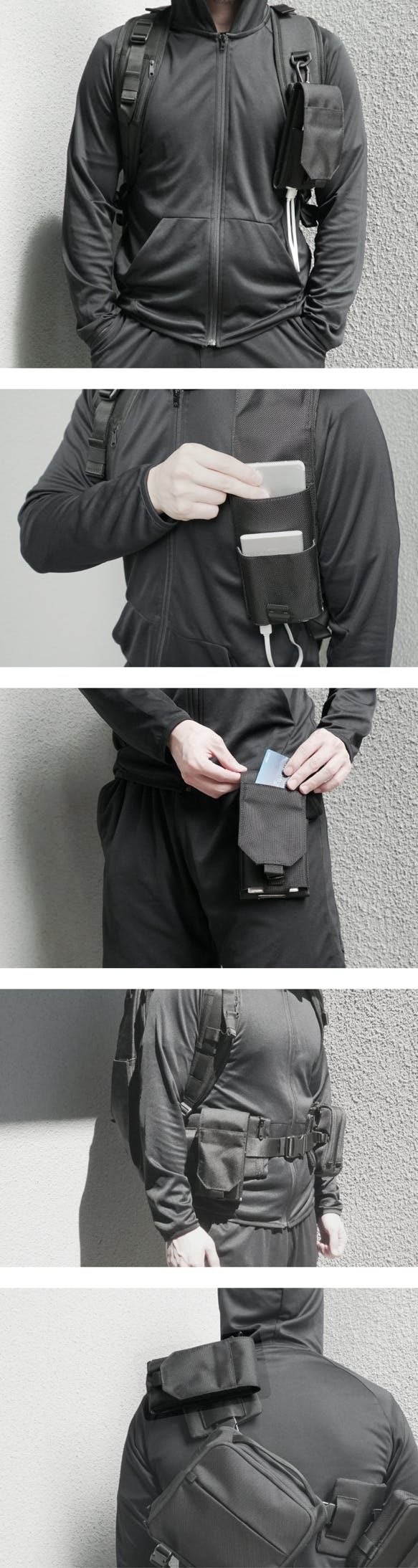 Bagram Pack本体のショルダーストラップに取り付ければ、充電しながらすぐに取り出せて非常に便利です。
