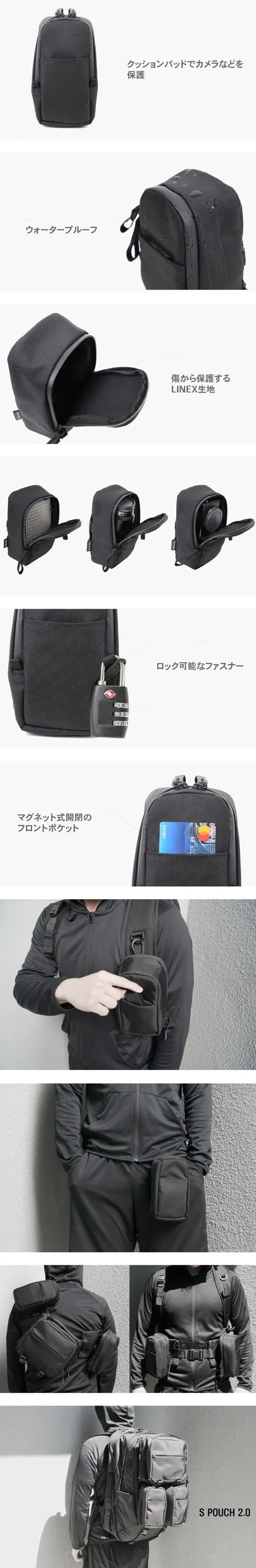 防水機能がついているS Pouchは、カメラやその付属品など、壊れやすいものを入れるのにおすすめです。