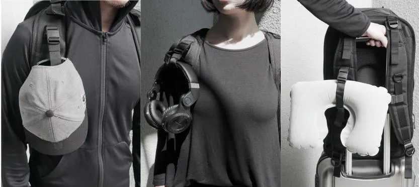 (7)バックルストラップを保持すると、三脚、トレッキングポール、長い棒の傘、靴を保持して、より良いアウトドアアクティビティを実現できます。