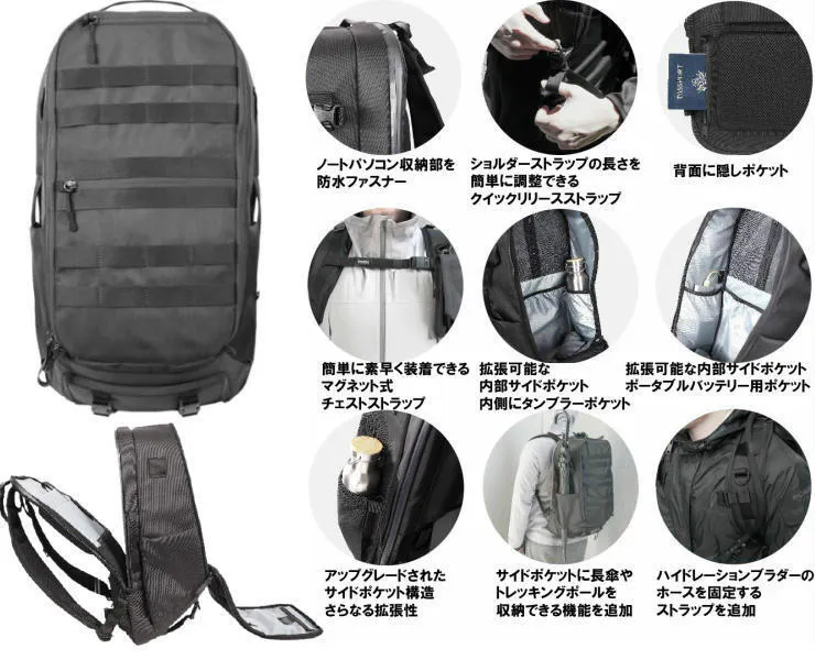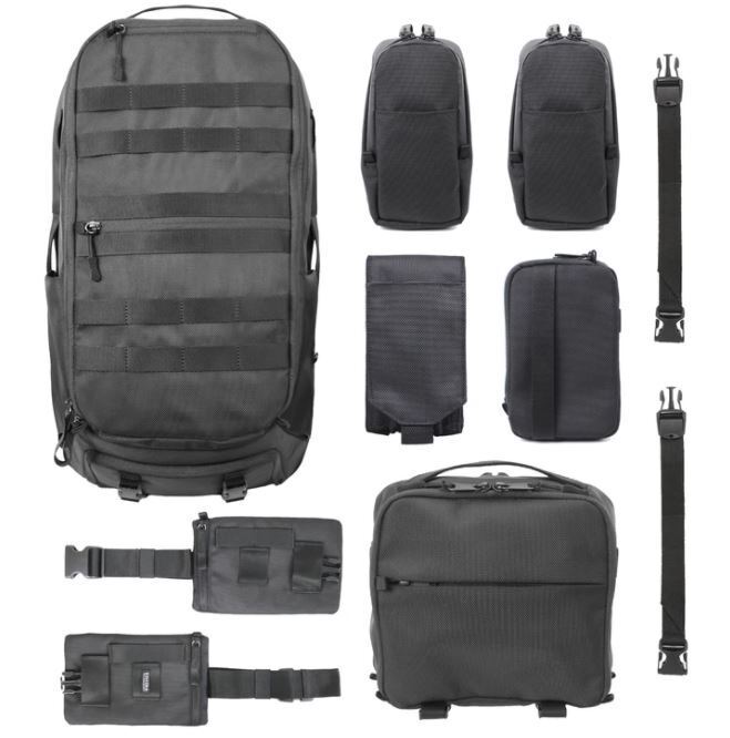 Bagram Packはアフガニスタンで使用していた軍用装備からインスピレーションを受けており、旅行や街の生活のために独自のmolleシステム(磁気)を使用して設計されています。