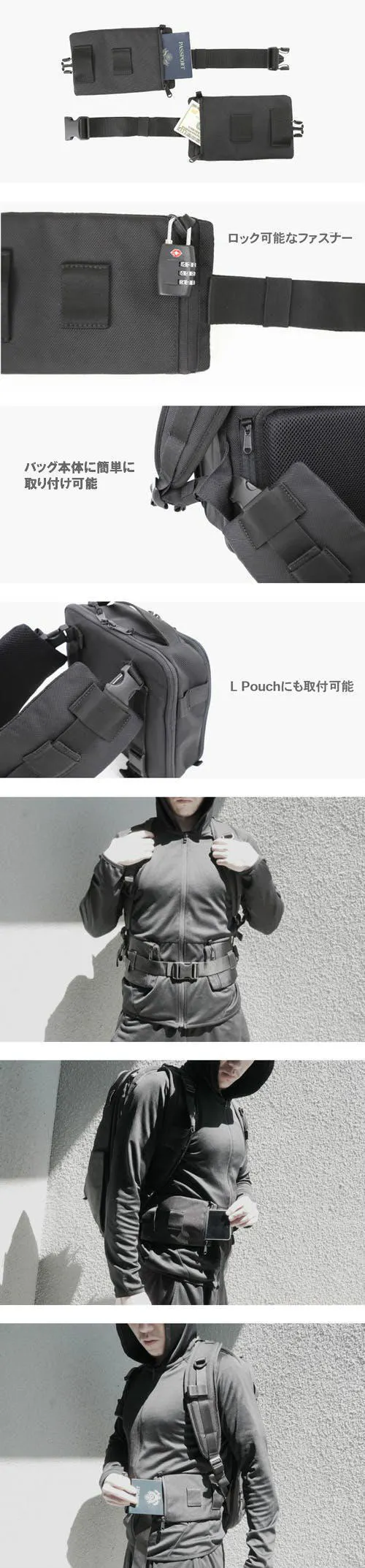 また、前述のL Pouchに取り付けて単独のバッグとしても使えます。