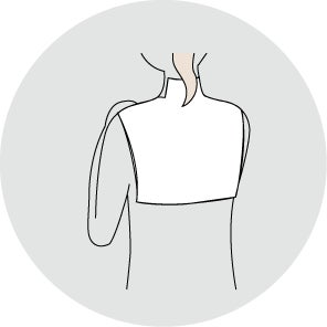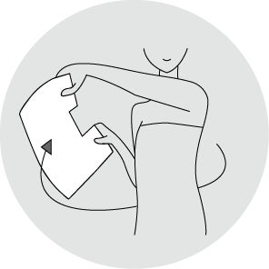 シートマスクの両端を持ち、ふわっと優しくシートを羽織るイメージで背中へはりつけます。その後、シートの端などのよれを軽く引っ張り伸ばします。