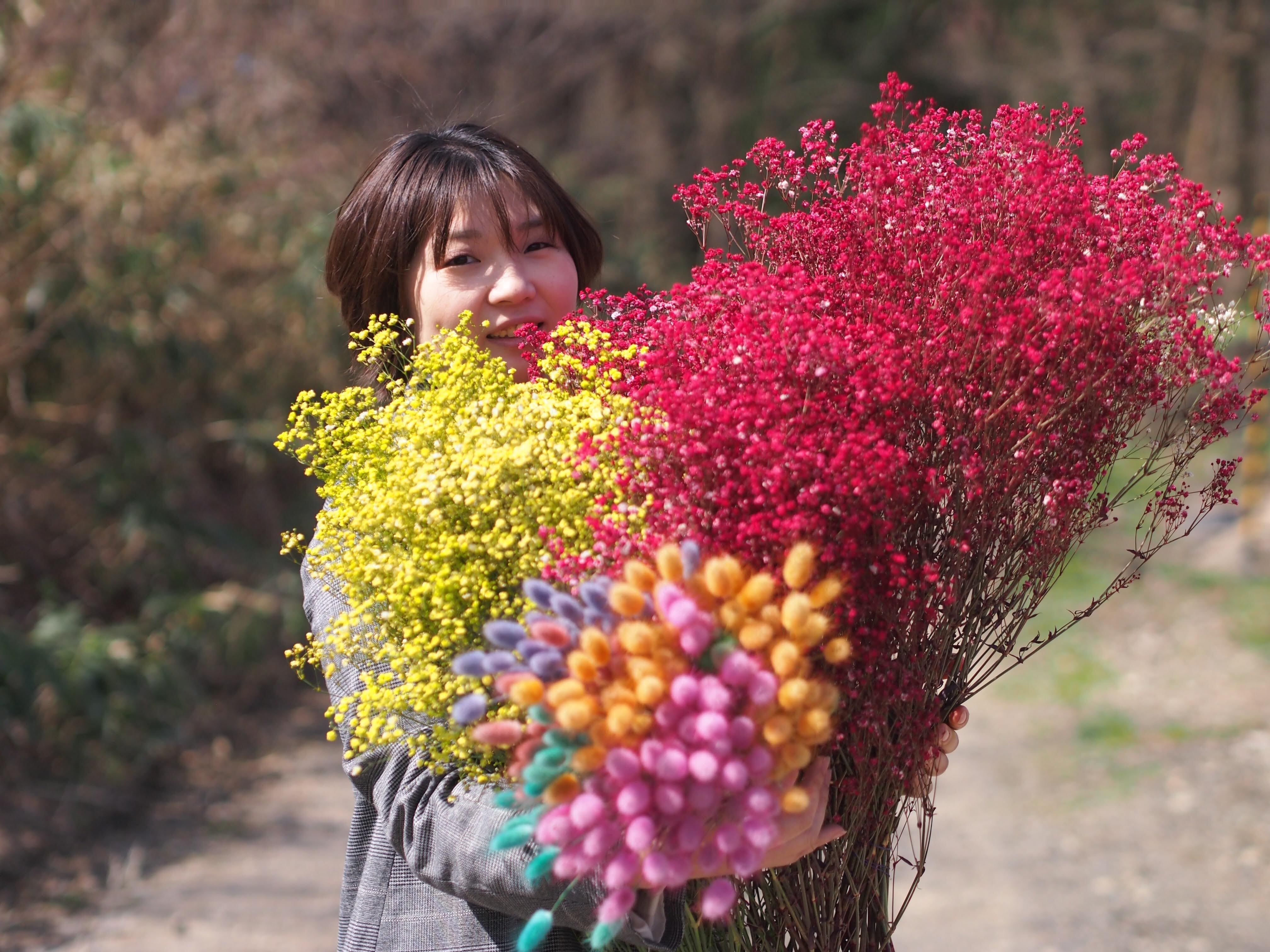現在はアトリエやイベントなどで自家生産のドライフラワーを使った