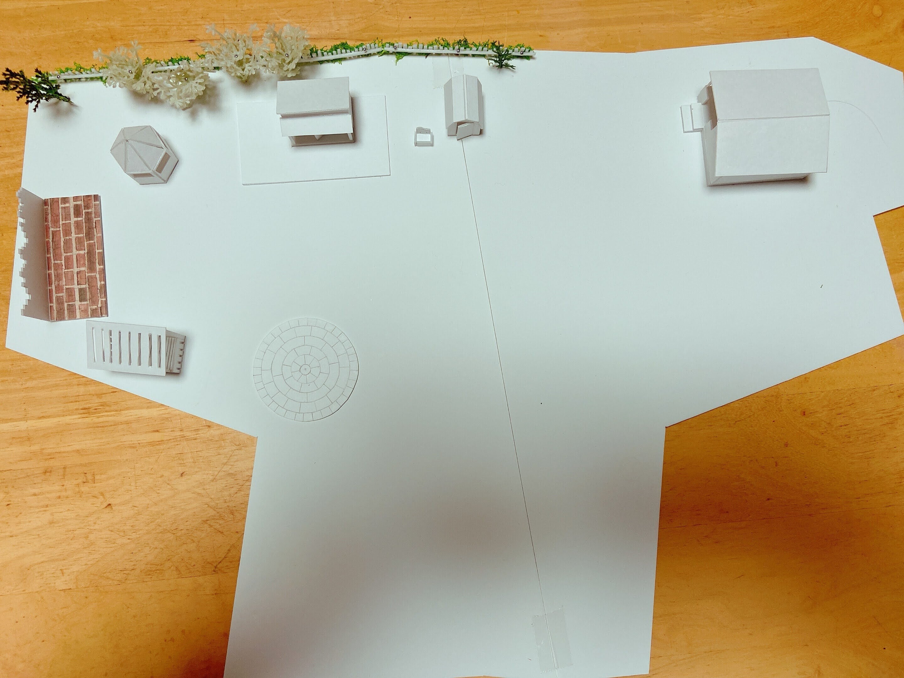 数か所の花壇、ガゼボ、ウッドデッキなどを設置します。