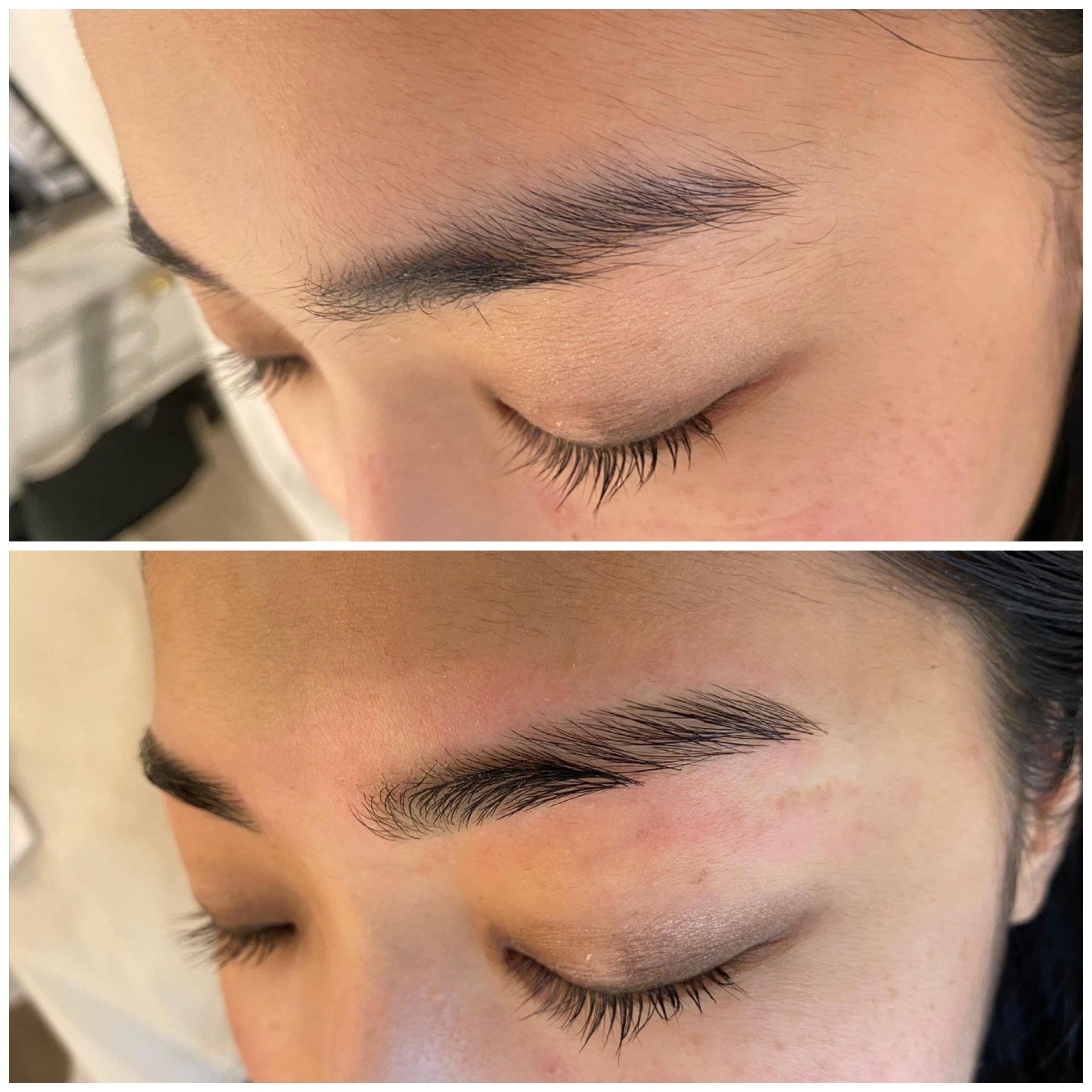 ご自身のなりたいイメージに近づくためにはどのような形や太さが良いのか、ご要望を伺った上で客観的に似合う眉毛を提案致します。↑画像の通り、一定の長さがある毛は毛根からワックス脱毛をすることで、同時に角質のお手入れもでき、透明感のあるご自身のお肌に生まれ変わります。艶のあるお肌はお顔の骨格を引き立ててくれます。(かみそりを使用したお手入れ方法で、青く見えてしまうのは、皮膚の色と眉毛の色が合わさってしまうためです。)