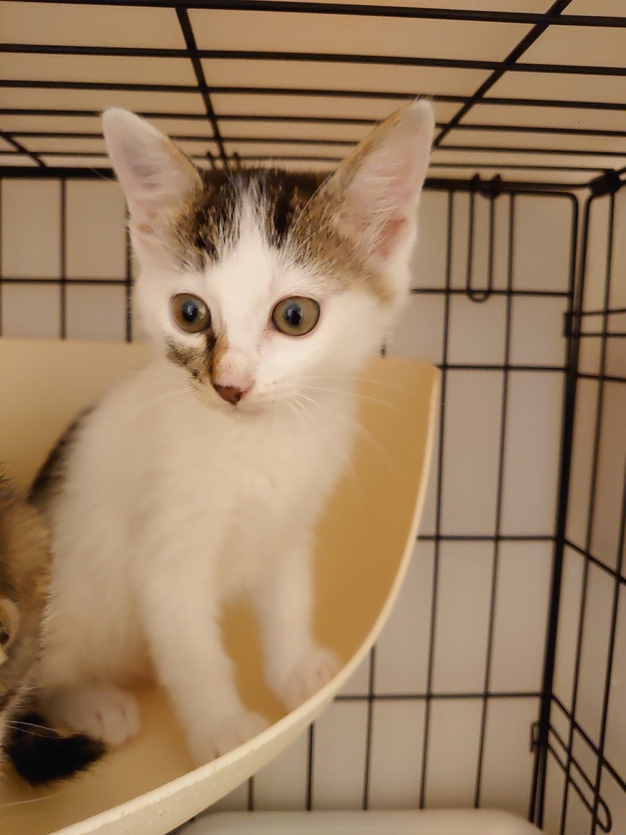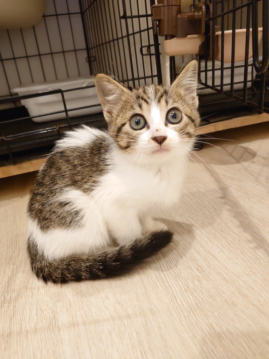 キジ白のホクちゃん。2ヶ月の女の子。ビビりなんですが慣れるとかなりお転婆さん。