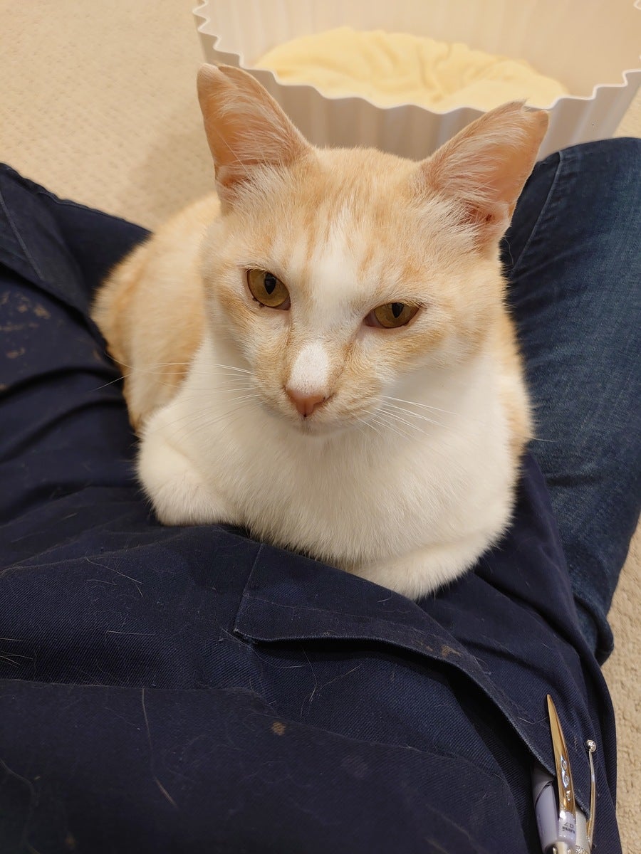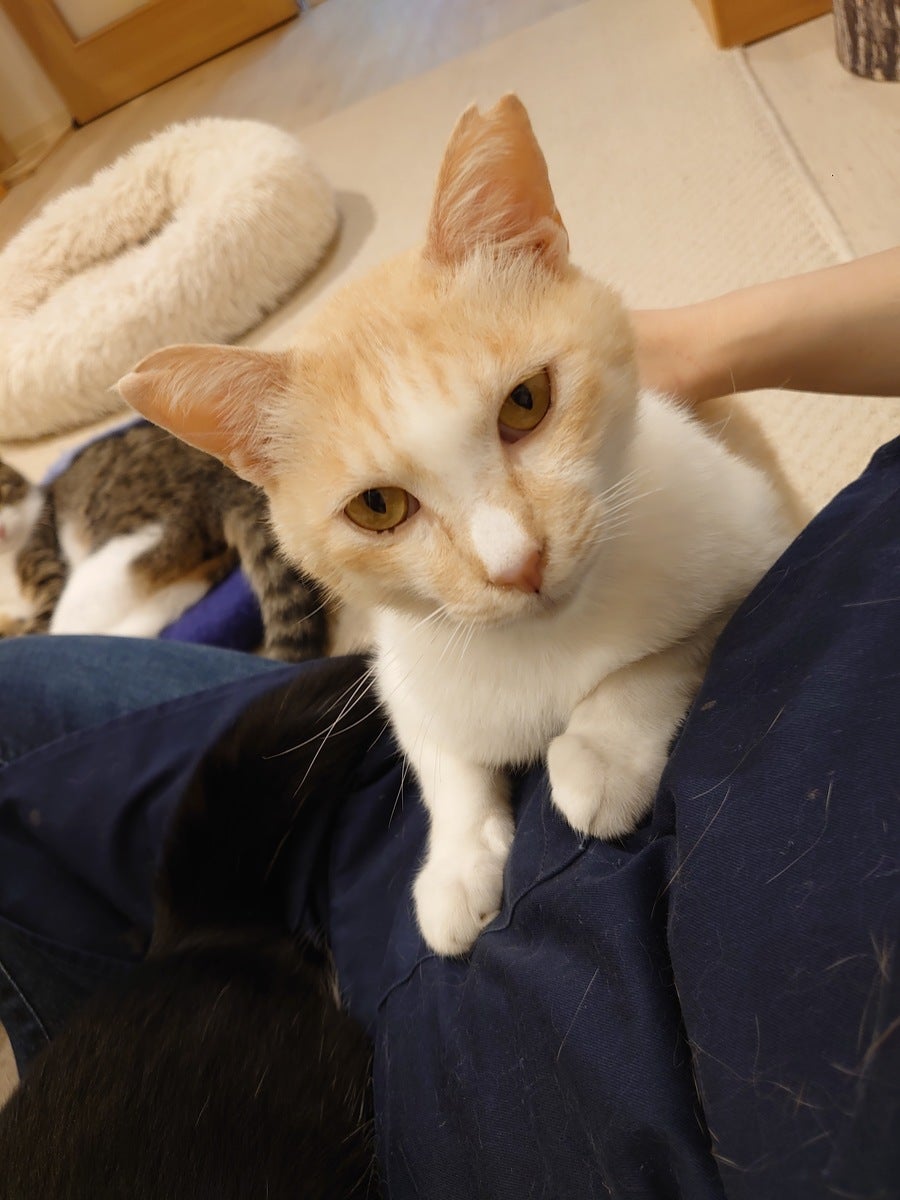 最近ラッキー君は自分からお膝に来てくれるようになりました!