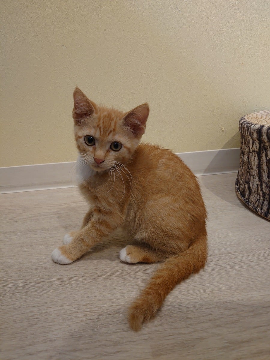麦わらのみかんちゃん。3ヶ月の女の子。少しビビりですがスリゴロで大人しいです。