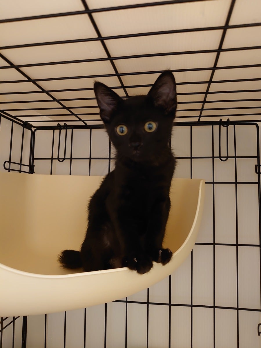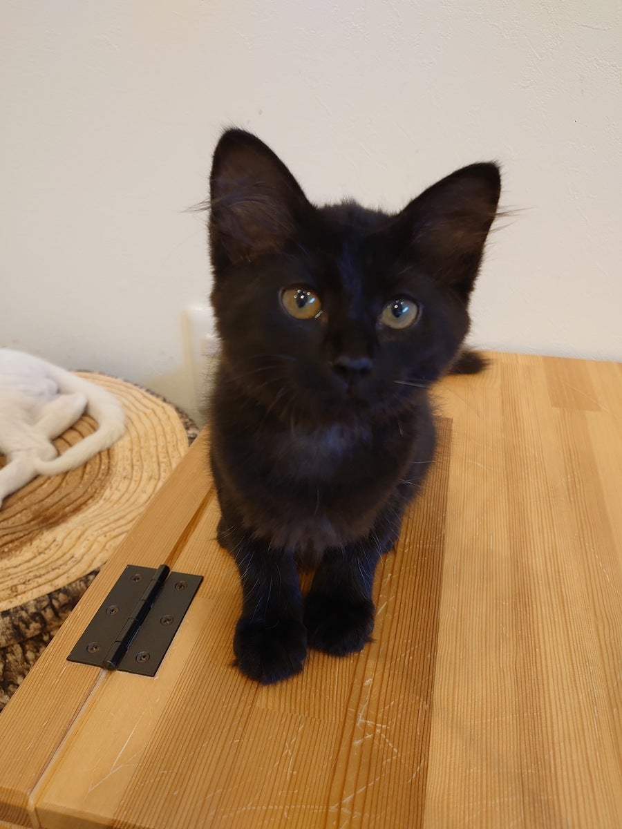 黒猫のこもも君。3ヶ月の男の子。活発でスリゴロ。人馴れ抜群。