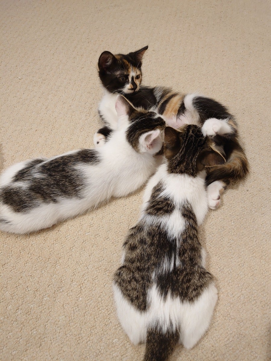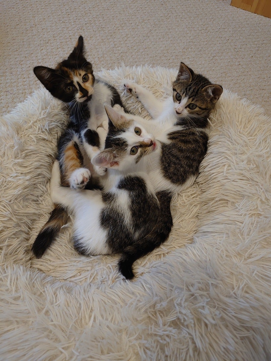 3匹一緒にいることも多く、ミナミちゃんとホクちゃんはお互いのおっぱいを吸ったり、2匹でアズマちゃんのおっぱいを吸っているんです!