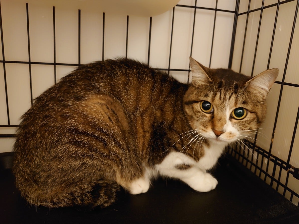 キジ白のキィちゃん。推定4歳の女の子。人が大好きで穏やかな性格。