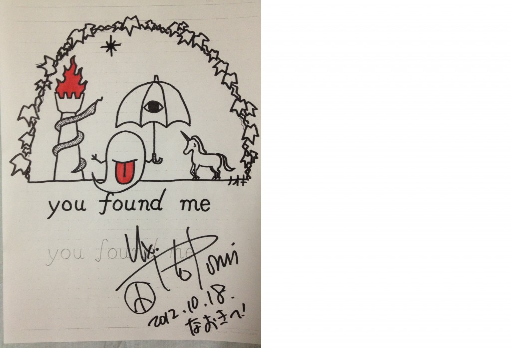 Tシャツをプレゼントしたときに原画にサインをもらいました。