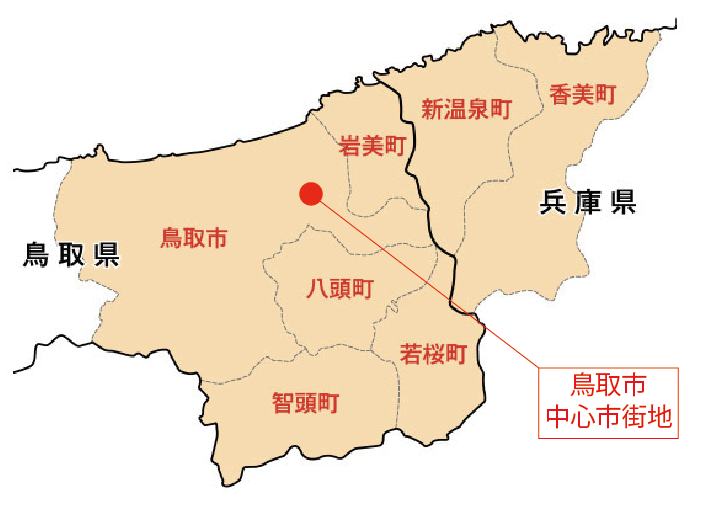 ▲鳥取市+周辺6町(麒麟のまち圏域)エリア