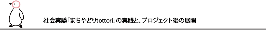 また社会実験を通して得た経験や知識、事業や人材ネットワークをエリアマネジメントを支える柱として育てていくと共に、まちづくりに継続的に関わることで、鳥取らしい賑わいづくりの役割の一端を担うことができればと思っています。