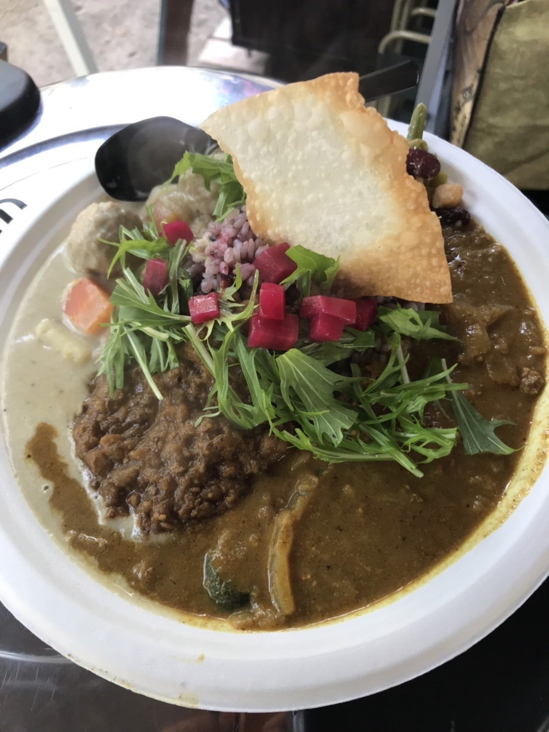 ココナッツミルクにスパイスと出汁の効いた猪のミンチを使ったスパイスカレー