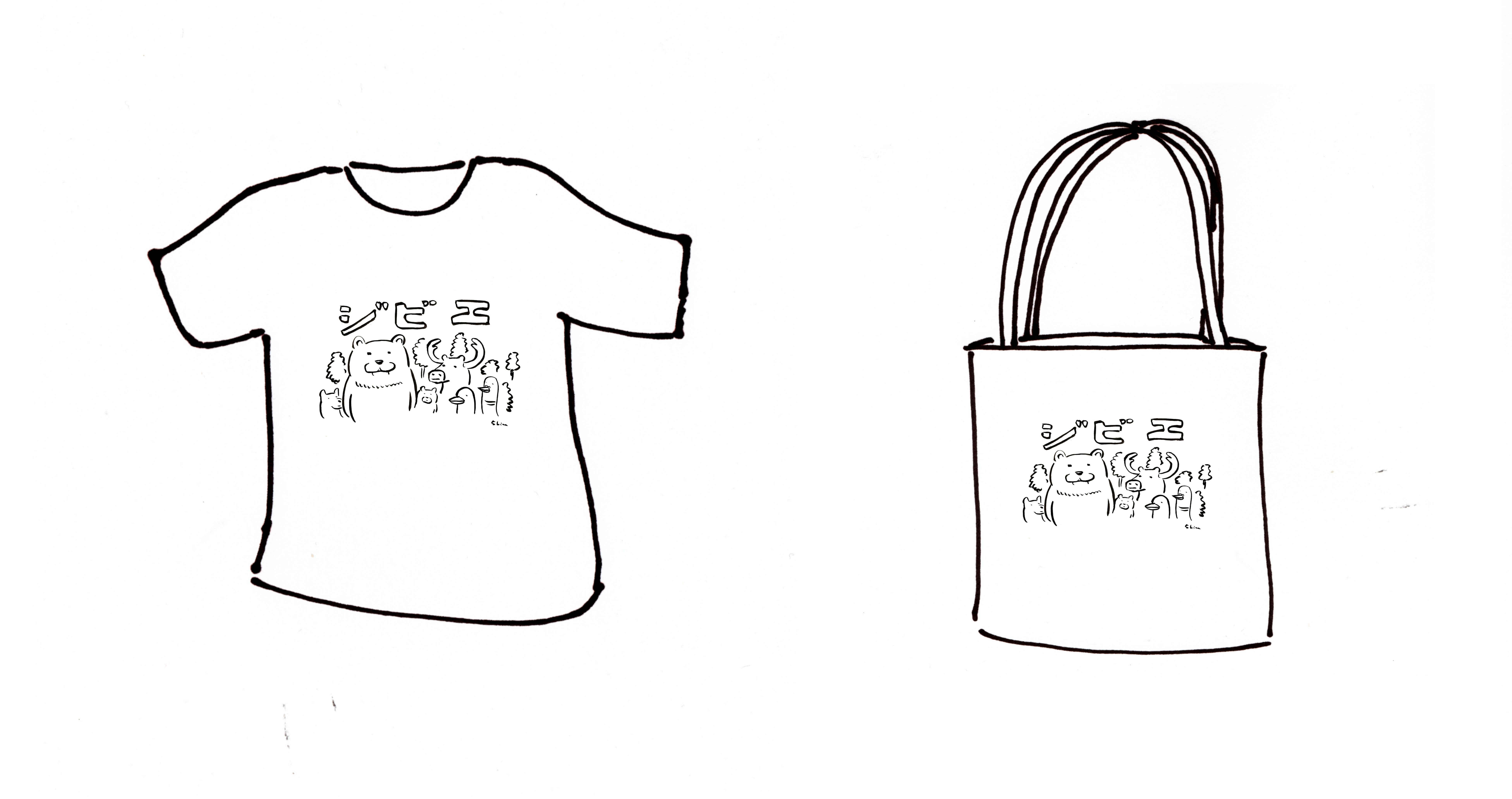 *島田画伯に昔書いていただいたジビエのイラストをTシャツとカバンにプリントしたもの。