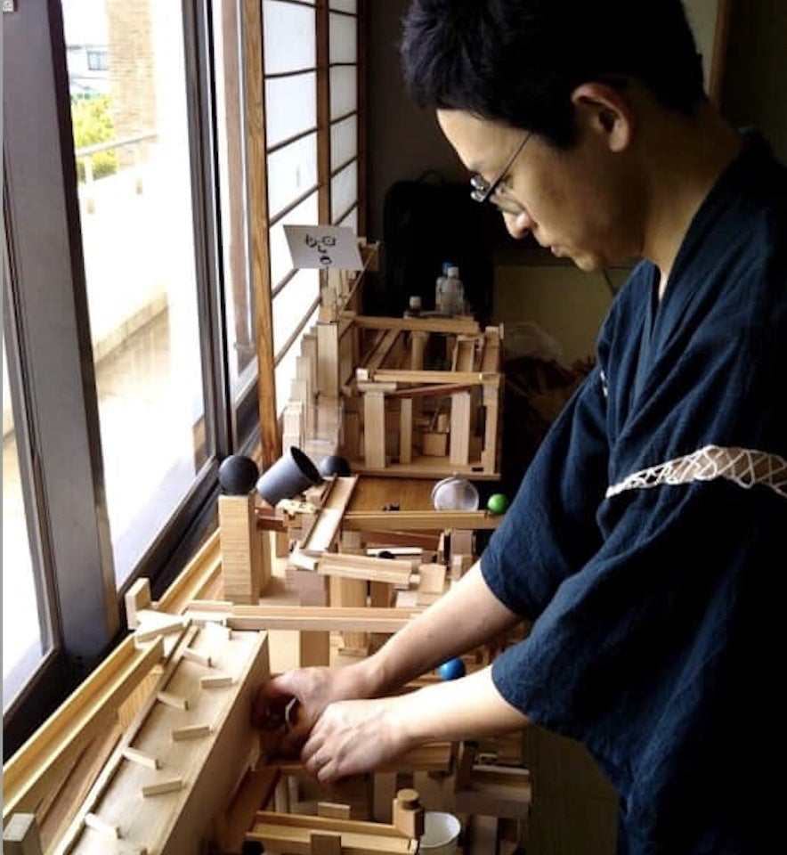フィニッシュまでにどこか1箇所でも失敗したらNGテイクになる。ドミノやレールの配置、装置の1mmのズレで成功確率がガクッと変わる世界。