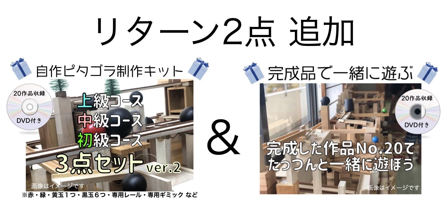 そして、2点目が、私たっつんと一緒に、完成したピタゴラ作品No.20「トレジャーハンター(後編)」で一緒に遊べるリターンというのを作らせてもらいました!