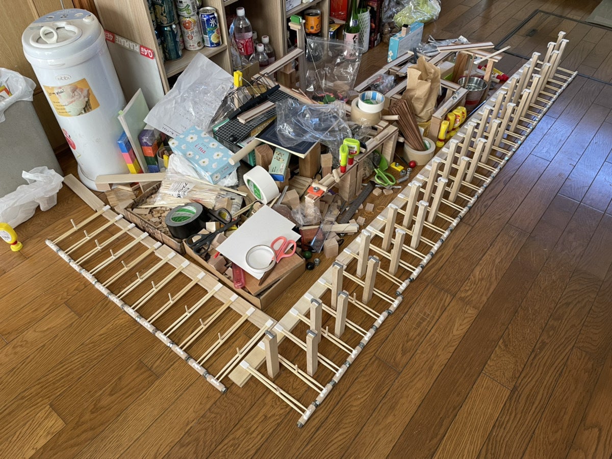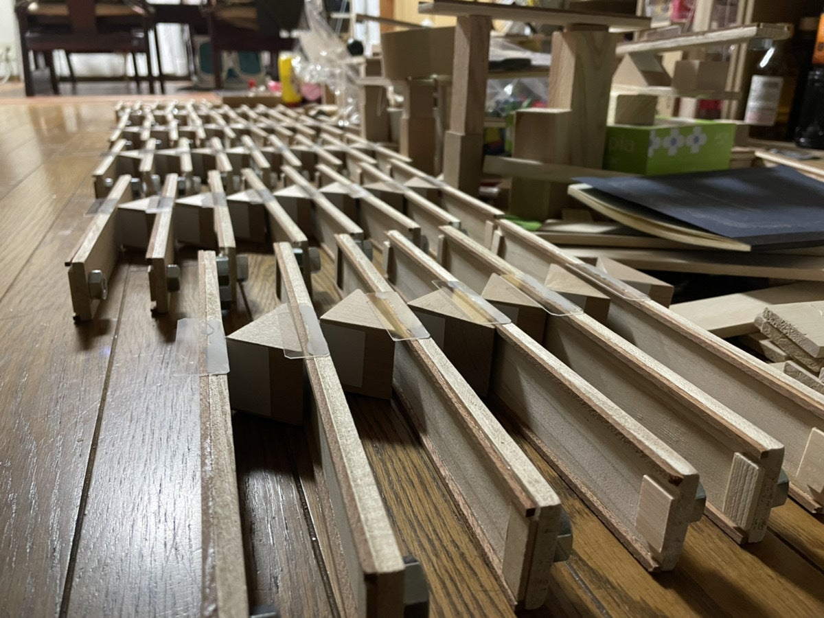 具体的には、レールの作成、レールの土台となるパーツの切り出し、やすりがけ、ギミックの制作、本編の制作と撮影、編集とDVD作成そして梱包、発送が残っています。