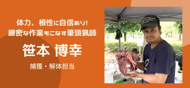 ジビエ専門出張料理人として一人で活動をしていたところ、飲食店仲間から、狩猟免許取った友人がいると現在のメンバーである、笹本と並木を紹介されました。