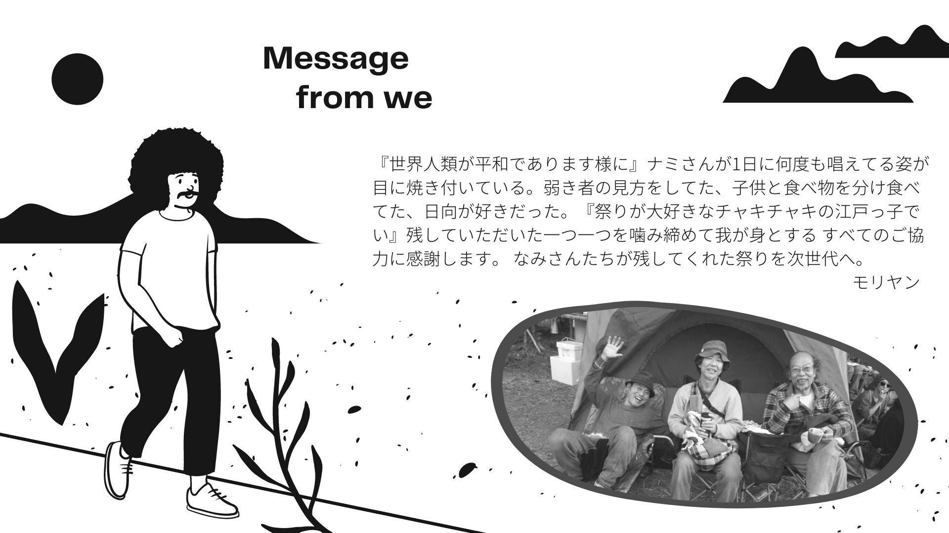 音楽と平和を愛した南正人が天国から笑ってくれるように、皆様のお力をお借りできたら幸いです。