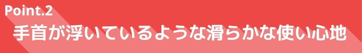 高級ゲーミングマウスにも採用されているフッ素樹脂基材の超低摩擦パットにより、他の樹脂では得る事の出来ない超低摩擦性能を実現しました。特に、一般的な事務用机やマット加工されたメラミン樹脂の天板、ゲーミング用のハードマウスパッドとの相性が良く、まるで手首が浮いているかのような使い心地です。マウスからキーボードへの手首の移動も驚くほどスムーズで、楽に動かすことが出来ます。