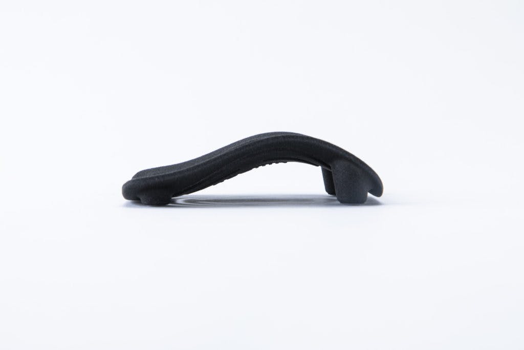 多数の手首のサンプルデータと多くの試作から、自然な付け心地と快適な操作性のバランスをとった黄金値(中央部高さ16mm)を見いだしました。hillockは、細部まで作り込んだ流線的な形状で、手首に違和感なく自然にフィットします。他の移動式リストレストは、手首を押し付けるようにしないと移動しないものもありますが、hillockはいつもと同じ操作で、自然に手首についてくるように設計されています。