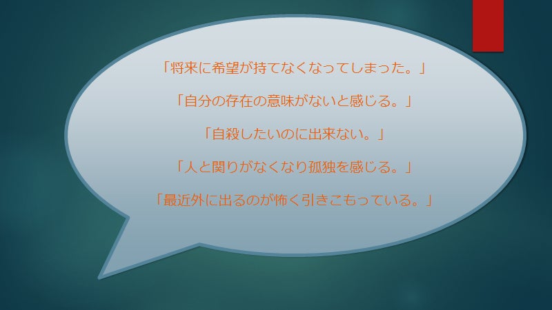 「自殺願望」「うつ状態」「悲しみや苦しみ」「どうしようもない不安」を私はカウンセリングで解決します。