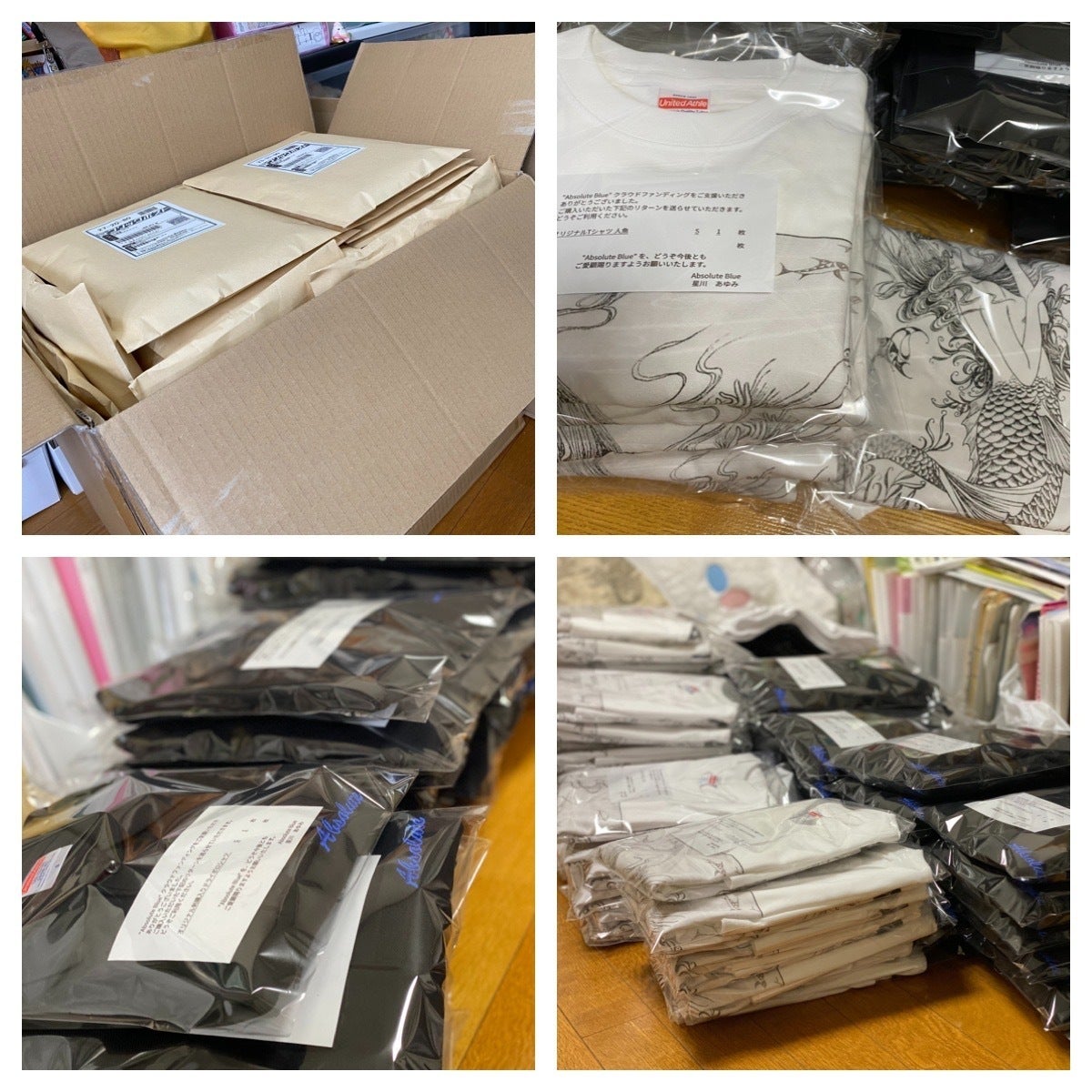 2021/05/10 07:263月30日に終了したクラウドファンディングのリターン、人魚Tシャツとロゴ刺繍ポロシャツ、総計120枚、発送しました!!これだけたくさんの皆様にご支援いただけたこと、本当に感謝です。1〜2日で到着予定です^_^これで、リターンのお渡しは全て完了となります。本当にありがとうございました。まだまだ厳しい状況は続きそうですが、引き続き頑張ります。これからも、Absolute Blue を、どうぞよろしくお願いいたします!!みなさまも、どうぞご自愛くださいませ。Absolute Blue 代表星川 あゆみ もっと見る