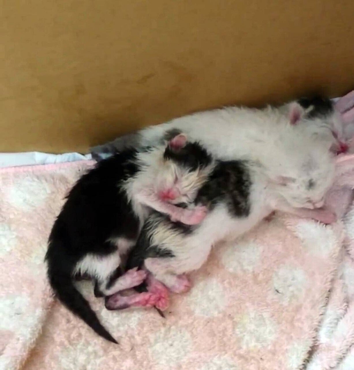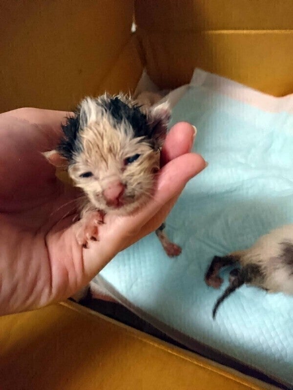 生後1〜2日のへその緒がついたまま捨てられていた子猫。