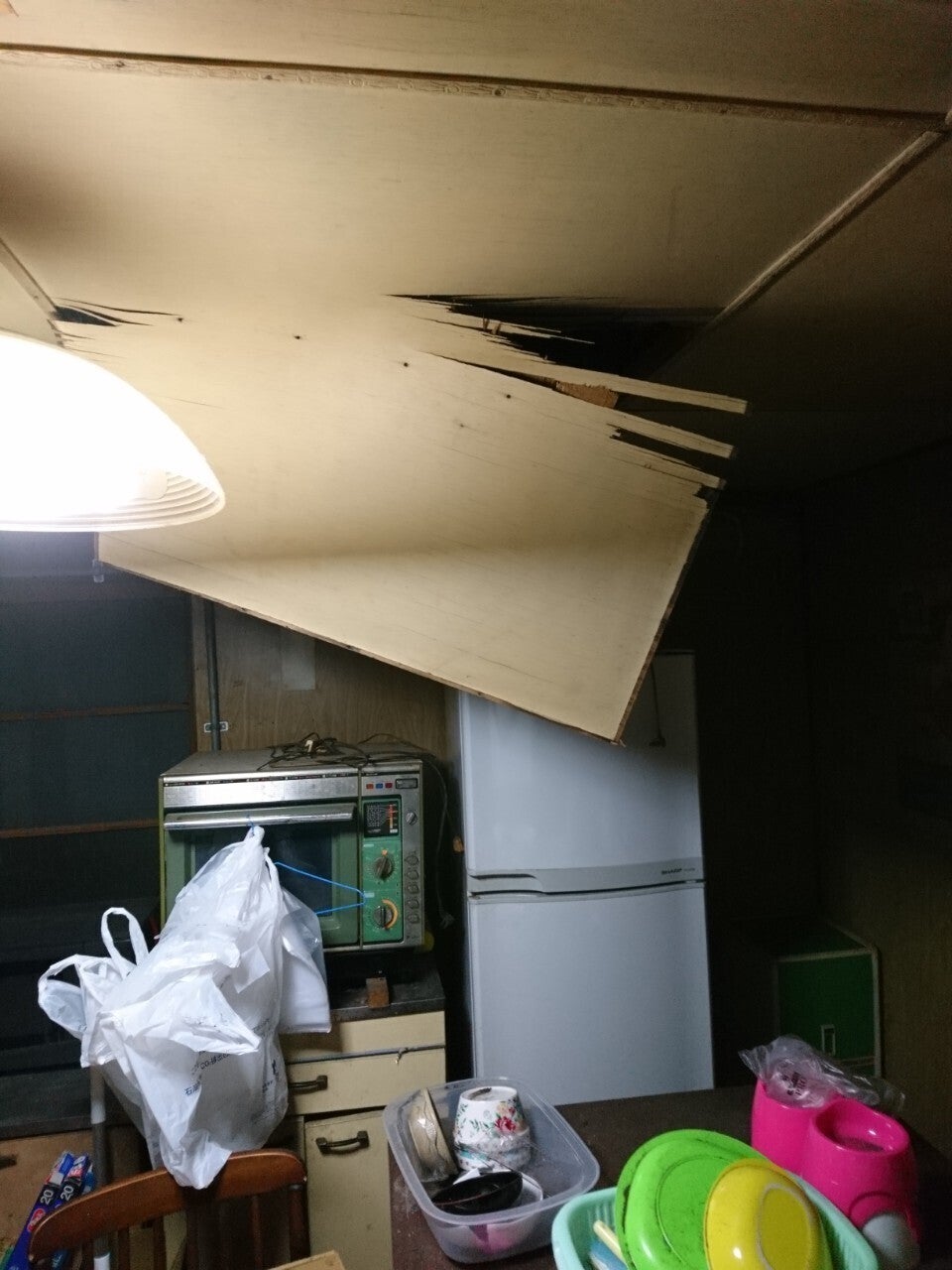 天井が壊れていて危ないです。