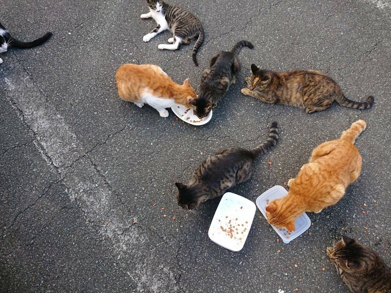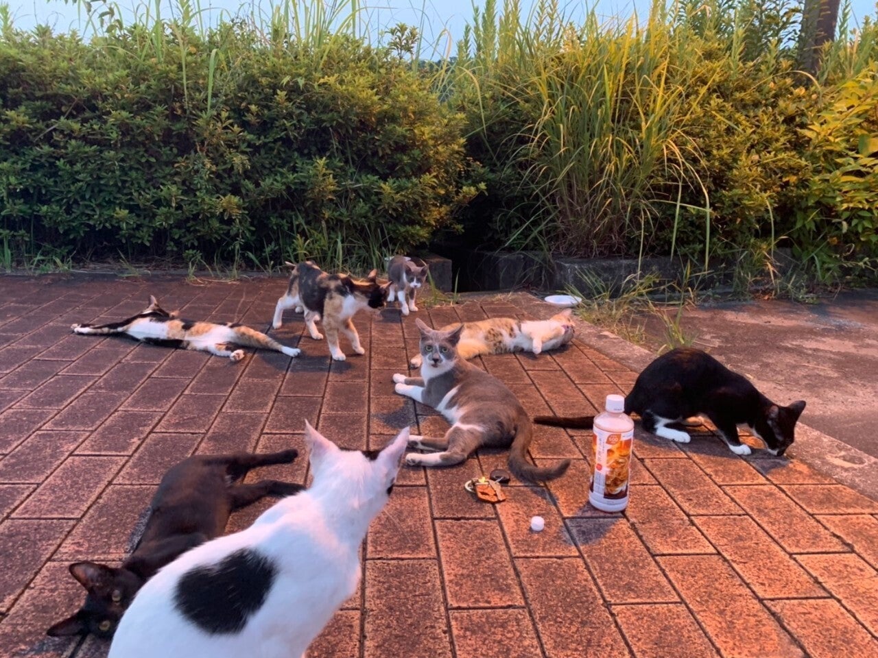 公園には複数の猫の群れがありました。