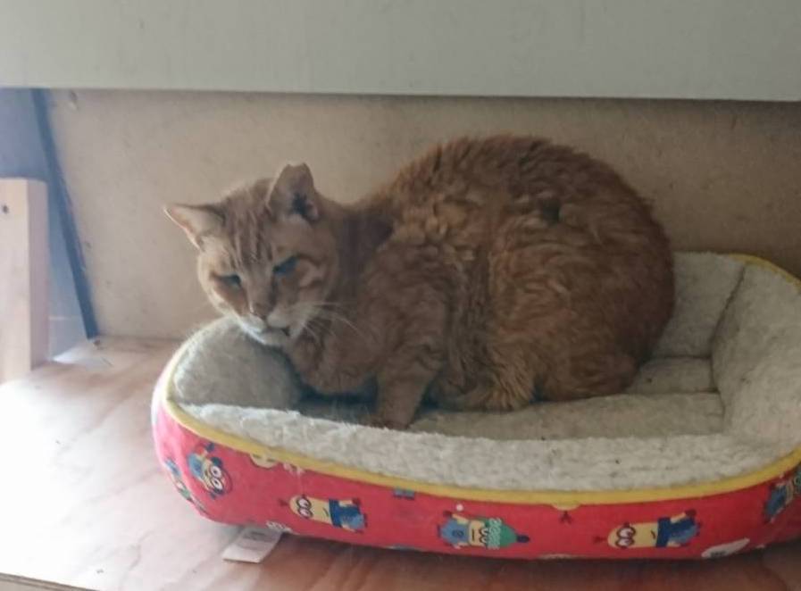 20歳近いちゃーくん、病院で治療、点滴を受け、クーラーのおかげもあり、少し元気を取り戻しています。