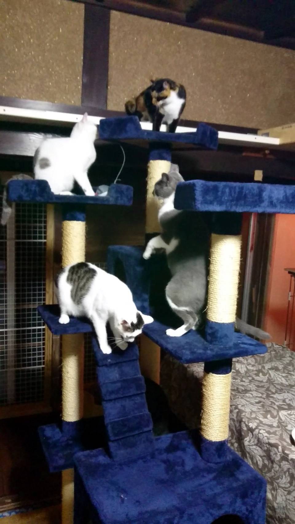 昨晩シェルターへ設置させていただいたところ、みんな大喜びです(o^^o)さっそく場所の取り合いで揉めていました♪