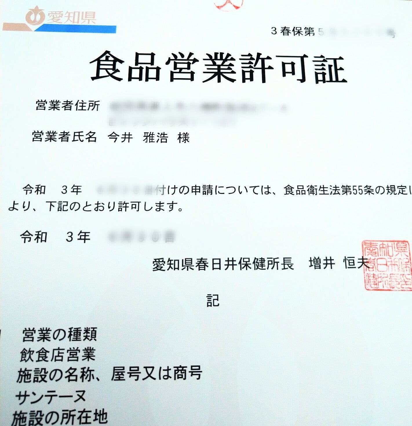 2021/07/14 17:05準備進んでいます!ご支援いただきました皆様ありがとうございます。今日保健所から飲食店営業許可証をもらってきました!今最終の準備試作しています。今週中には詳しくお知らせします。もう少し待ってください。 もっと見る