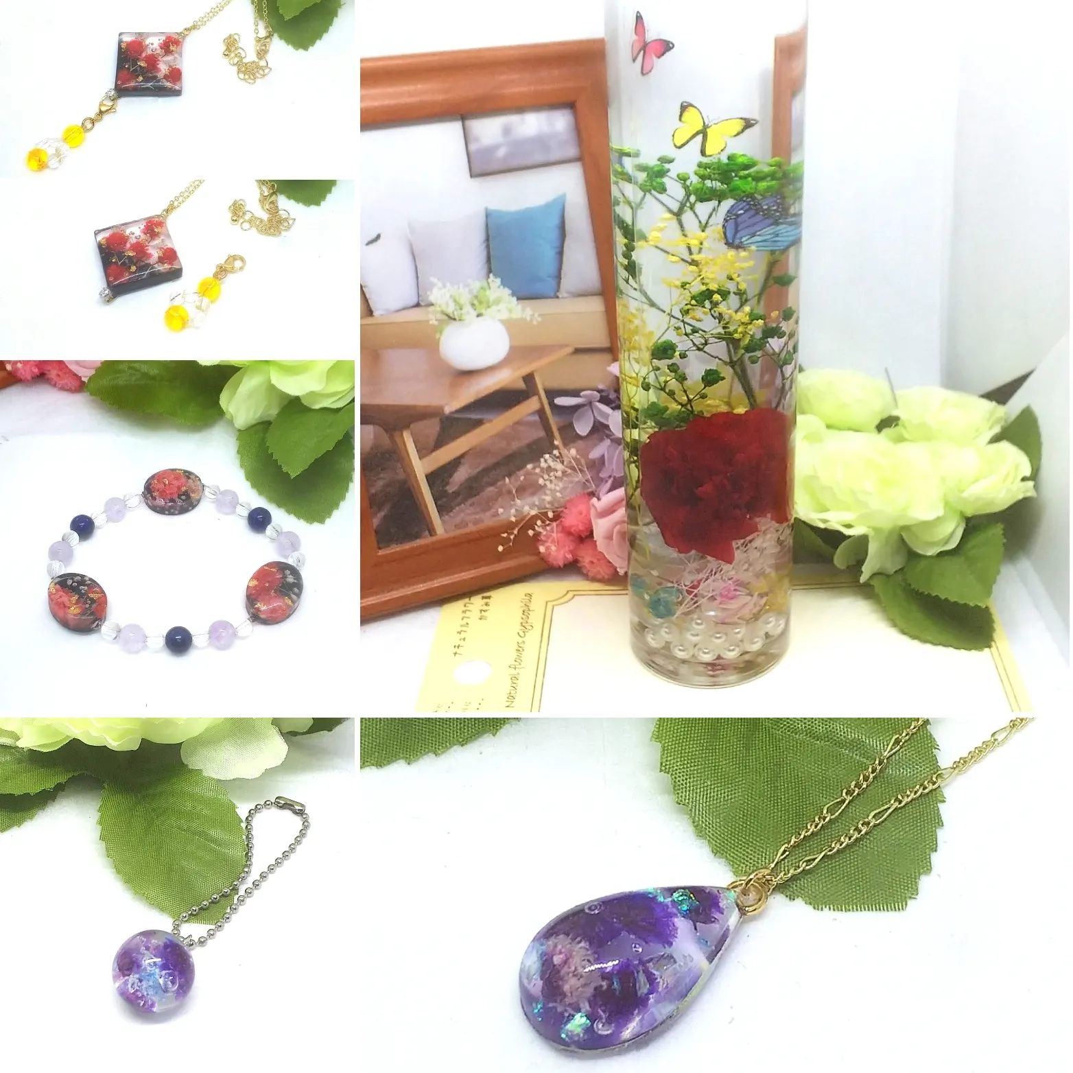 *母の日のハーバリウム+ネックレス+天然石ブレスレット