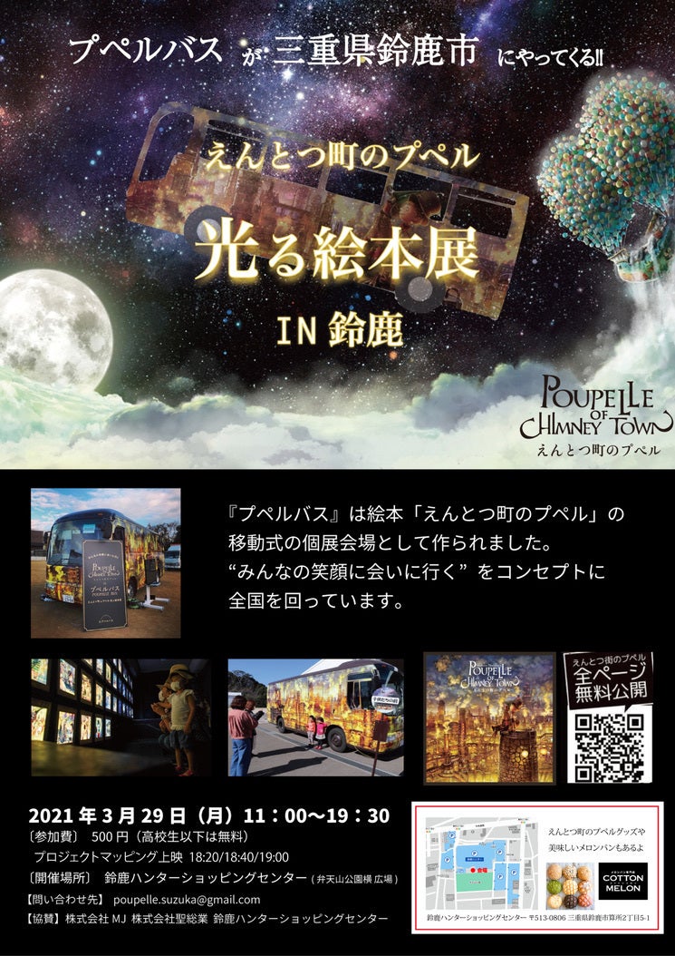 この度、プペルバスを地元鈴鹿に呼べる環境が偶然にも揃いましたので、意を決してこのイベントを開催し、地元の方を特に子供達を元気づけられたらなと思います。