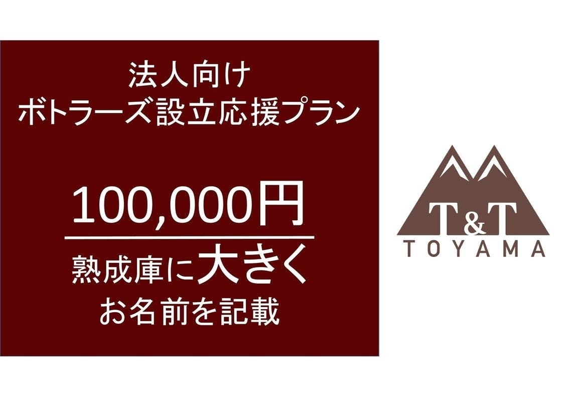 10万円の法人向けの熟成庫に大きくお名前を記載するリターンですが、こちらは、1名様をボトラーズ設立記念パーティへのご招待(富山県内で開催)へ、1名様をご招待させていただきます。
