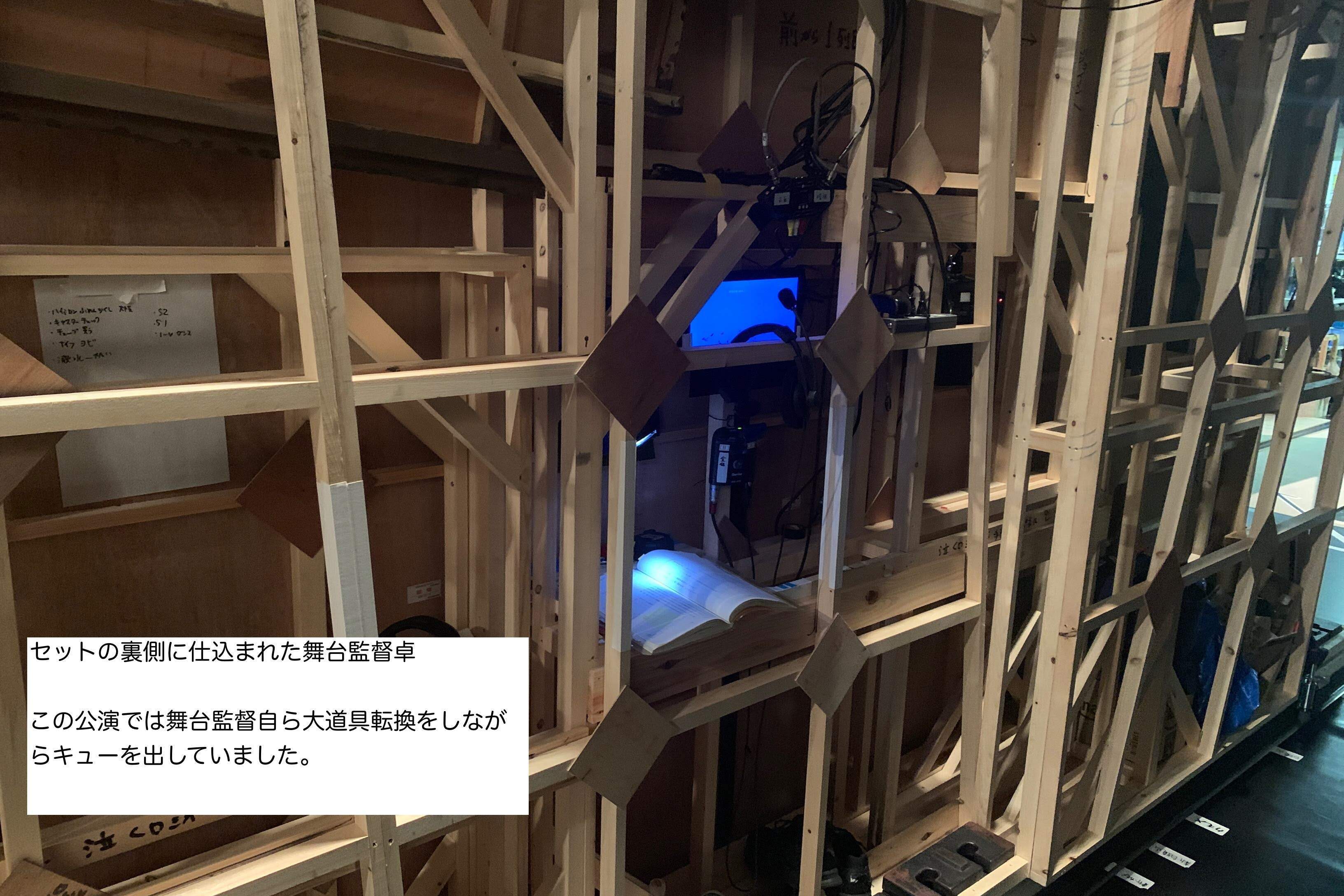 「搬入・作業のメドがついたころ、最初の15分休憩。この間に声がかかる。「あの~、弁当どこに置いておきますか~」「稽古場に演出家の上履き残っていませんでした~」「舞台稽古の時、主演の〇さんが30分ぐらい遅れそうなので出演していないシーンから場当たり出来ますねえ~」これらはこれからどう仕込みの段取りをとろうかと考えているときに割り込んでくる…。だが、冷静を装う。初日までなら何とか人格者のようにふるまえるはずだ。全ての質問を受けとめよう。」