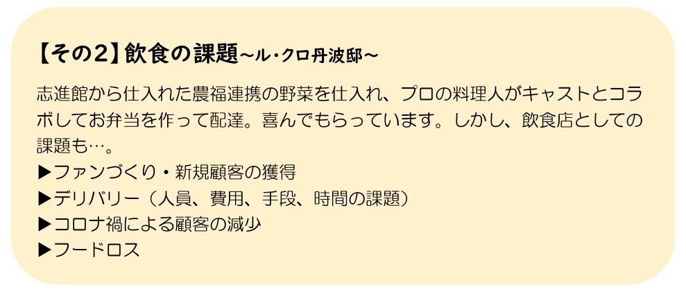 一般社団法人am*amの農福連携に加えて、ル・クロ丹波邸との「食」の連携を進める中で、「農業」「飲食」「地域」にある課題を知りました。