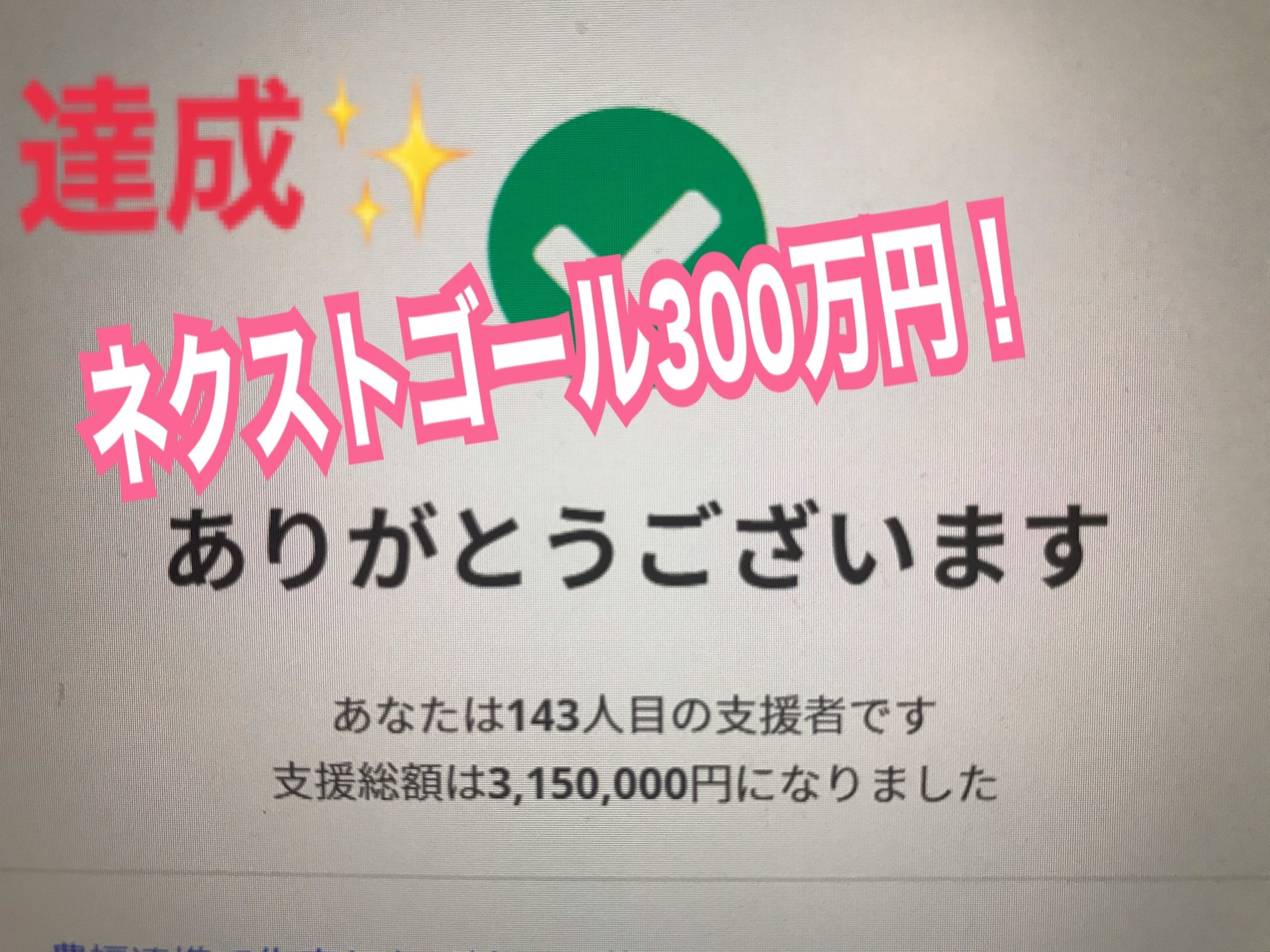 2021/06/30 23:21【あと1時間を切りました!】最終日の今日も、たくさんのお問い合わせやご支援をいただきました。夕方にはネクストゴールの300万円も達成!!みなさまからのご支援の賜物です。ありがとうございました。あと40分!!ご支援をよろしくお願いいたします。 もっと見る