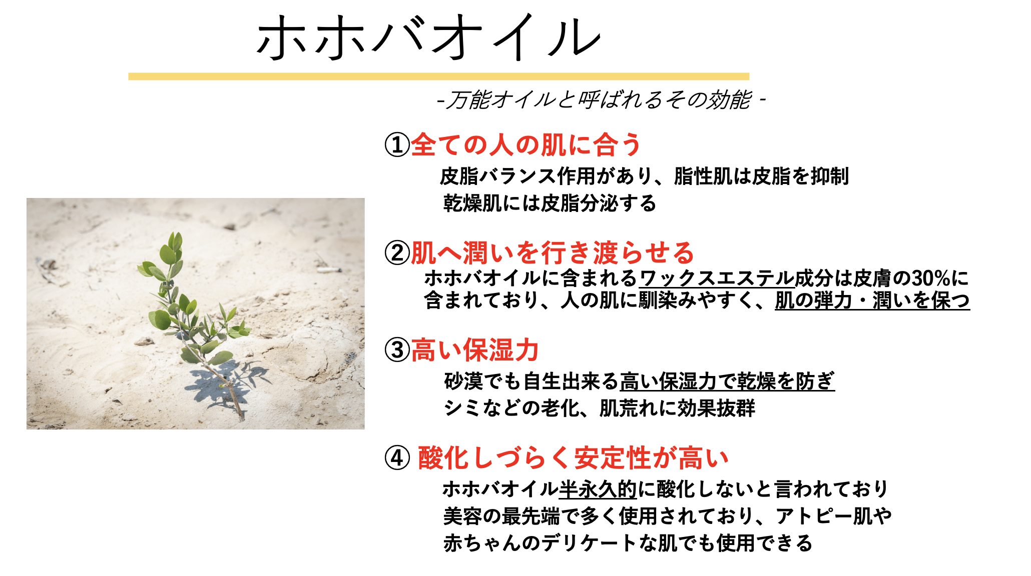 ①容器にも記載してある最強保湿成分【ホホバオイル5%配合】
