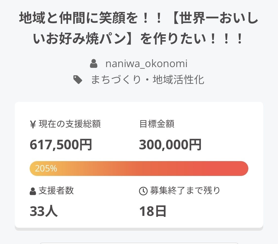 まさかのプロジェクト開始1時間でのsuccessから、3日を経ずに200%達成と驚きを隠しきれません。