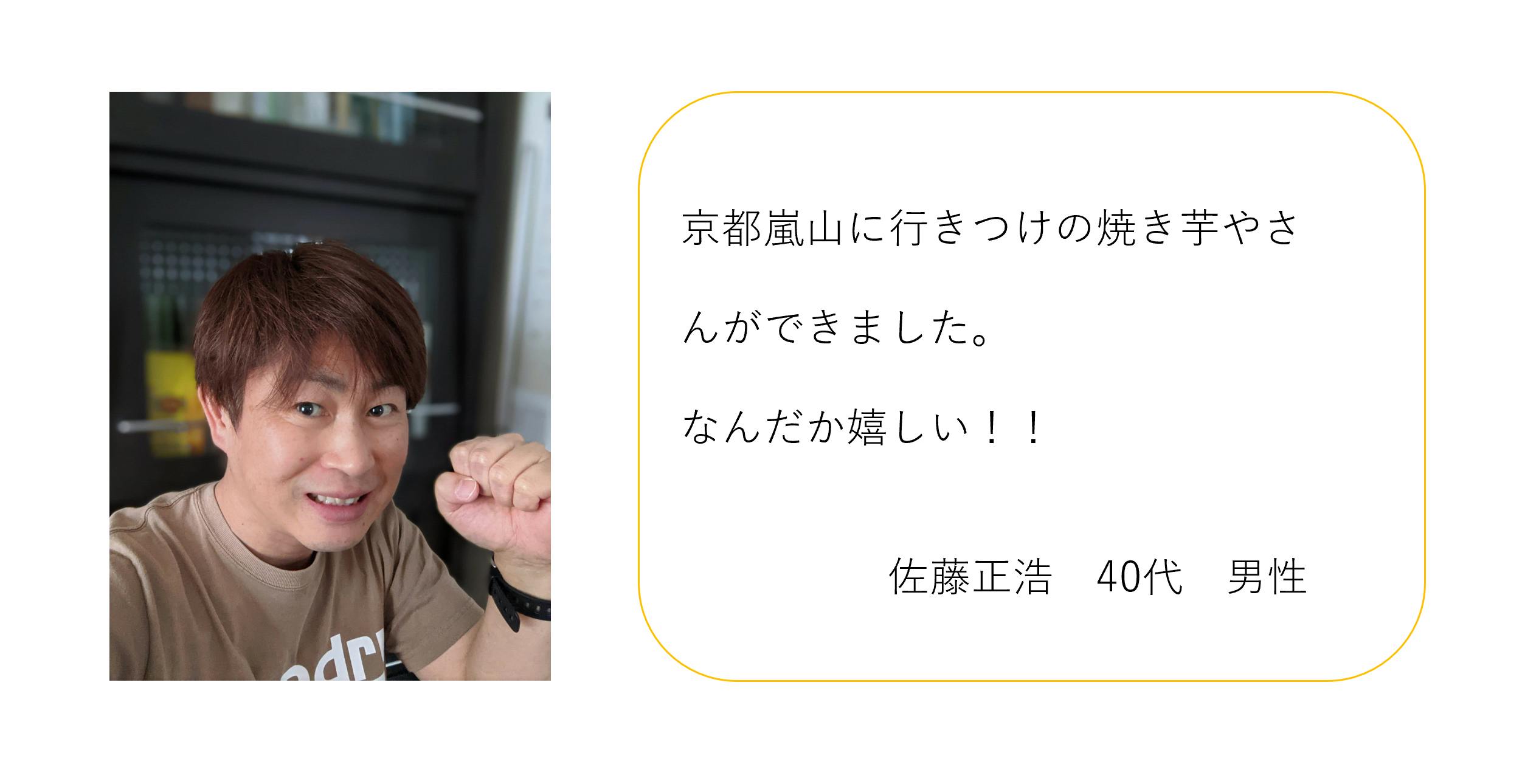 そして、そのパワーは、このピンチをチャンスに変えるために使おう!じっとしているだけではダメだ!と奮起し、この度、京都の観光地『嵐山』で『やきいも専門店』をオープンすることを決意しました。