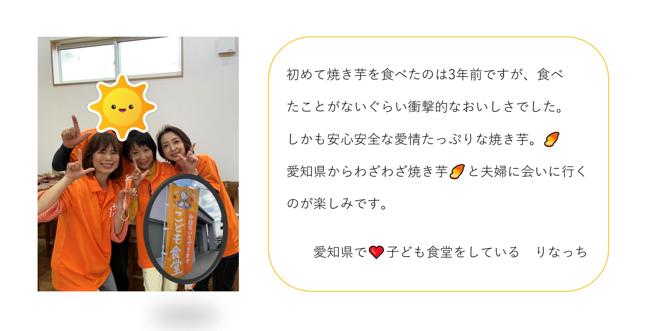 昔ながらの焼き芋の移動販売に『エンタメ』を盛込んで、楽しく印象に残るやきいも屋さんを目指して活動していました!