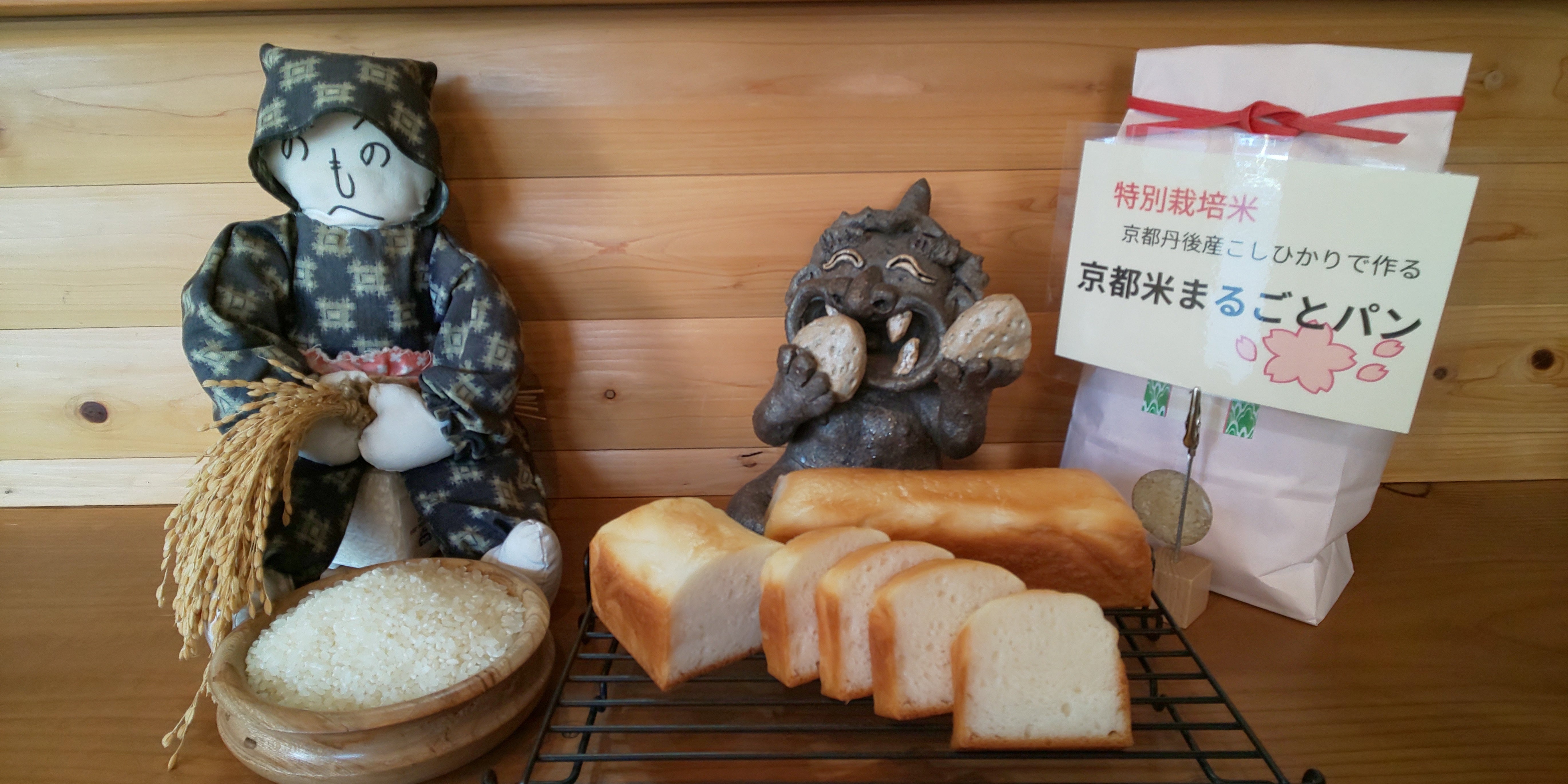 京の米屋が、米屋の米にこだわり、自家精米したての京都府丹後産こしひかり米だけで焼く「京都米まるごとパン」をお届けいたします。